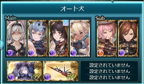 予選(AT フルオート) 途中まで2ポチでやってましたが、面倒くさくなってフルオートにしました。 肉2000個くらいならAT中だけで充分集められます。 クリュサオル1アビで奥義が入れ替わるので、麒麟剣はサブに置いてます。 発動するアビはクリュ1、フェリ1、水…